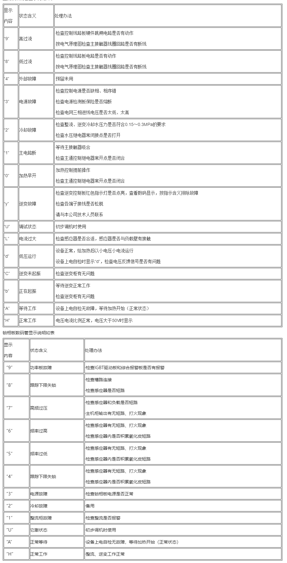 ? ? ? ?整機(jī)設(shè)置二十余種保護(hù)措施,提高設(shè)備穩(wěn)定性,防止設(shè)備損壞。有報(bào)警信息經(jīng)控制板相應(yīng)處理后送至STC單片機(jī)。通過數(shù)碼顯示,維護(hù)人員可方便了解設(shè)備故障原因及處理對策。